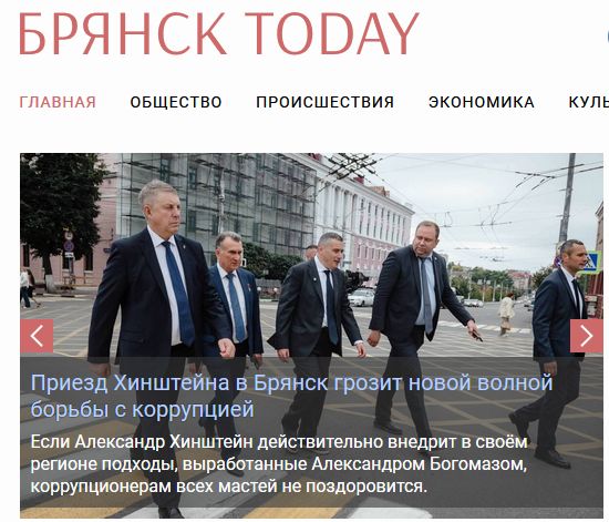 А наши придворные СМИ новость сию озаглавили громко: «Приезд курского губернатора Хинштейна грозит новой волной борьбы с коррупцией». Растиражированный районками панигирик из «БрянскToday» заканчивался словами: «Если Александр Хинштейн действительно внедрит в своём регионе подходы, выработанные Александром Богомазом, коррупционерам всех мастей не поздоровится». Действительно, у нас уже 5 бывших заместителей губернатора сидят – в каком ещё регионе такая борьба с коррупцией идёт? А если ещё и новая волна “борьбы” поднимется?